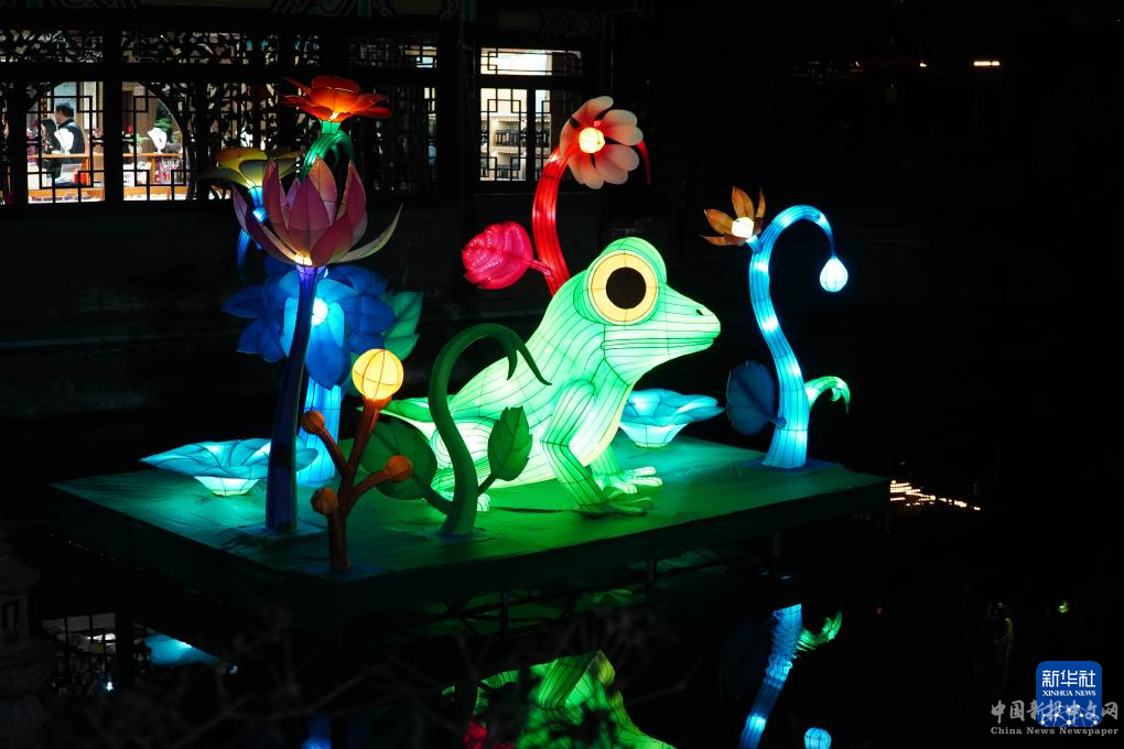 在濟(jì)南市趵突泉公園布置的大型花燈(2月11日攝)。