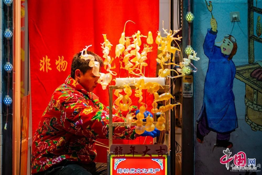2024新春文化坊會上展示的非物質(zhì)文化遺產(chǎn)項目吹糖人。中國網(wǎng)記者 鄭亮攝