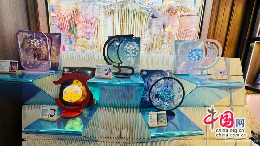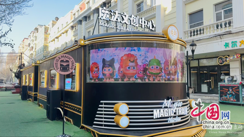 說(shuō)到文創(chuàng),記者發(fā)現(xiàn),中央大街新增一處全互動(dòng)沉浸式文旅新場(chǎng)景——“龍粵號(hào)北境魔法列車”。該場(chǎng)景整體為復(fù)古風(fēng)格的火車與配套車間造型,配備了全息裸眼3D景觀、魔法聲音電話亭、雪花煙花樹等多組科技互動(dòng)區(qū)域,吸引了大量游客體驗(yàn)打卡。車輛內(nèi)部琳瑯滿目地陳列了精美的哈爾濱主題文化創(chuàng)意產(chǎn)品。非遺白瓷丁香花、AR冰箱貼、冰雪系列主題絲巾、與故宮文創(chuàng)紙制品團(tuán)隊(duì)聯(lián)合開發(fā)的黑龍江系列主題紙雕燈……內(nèi)容則有“把哈爾濱帶回家”“龍年北國(guó)迎新春”“冰雪運(yùn)動(dòng)亞冬會(huì)”等幾大系列,游客們熱情搶購(gòu),紛紛拍照留念。