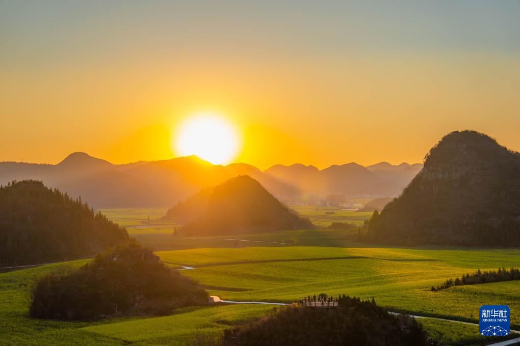 近期,云南省曲靖市羅平縣近百萬(wàn)畝油菜花相繼綻放,花海與山巒、村寨勾勒出一幅田園春景圖,吸引不少游客前來(lái)賞花踏青,感受春天的氣息。