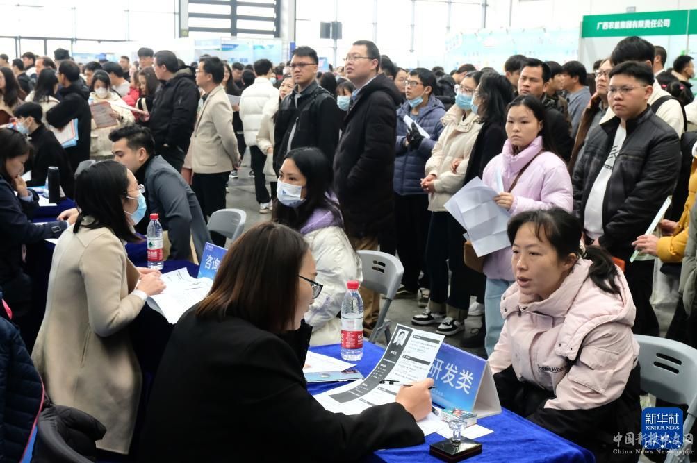 當(dāng)日,2024年春季廣西人才交流大會在南寧國際會展中心舉行,近800家單位攜5萬多個工作崗位參會。
