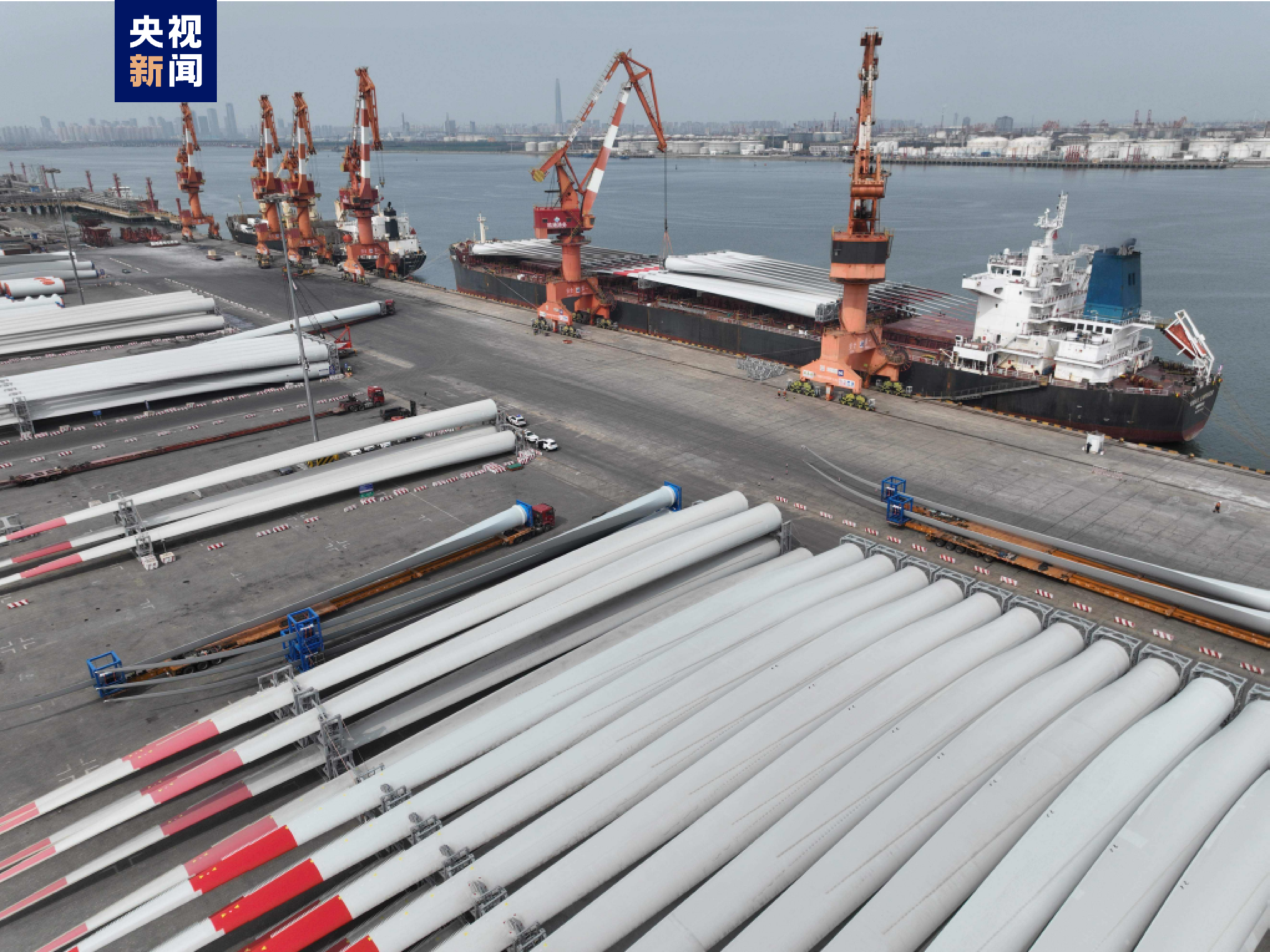據(jù)了解,此次共起運(yùn)72件風(fēng)電塔筒和60件風(fēng)電葉片,其中葉片長80米,單重33噸,貨物總體積超69000立方米,是我國專門為國際市場需求研發(fā)的4.6MW風(fēng)電。本次作業(yè)創(chuàng)造了天津港地區(qū)風(fēng)電作業(yè)船舶最大、單船裝載量最多的紀(jì)錄,迎來了龍年港口生產(chǎn)開門紅。