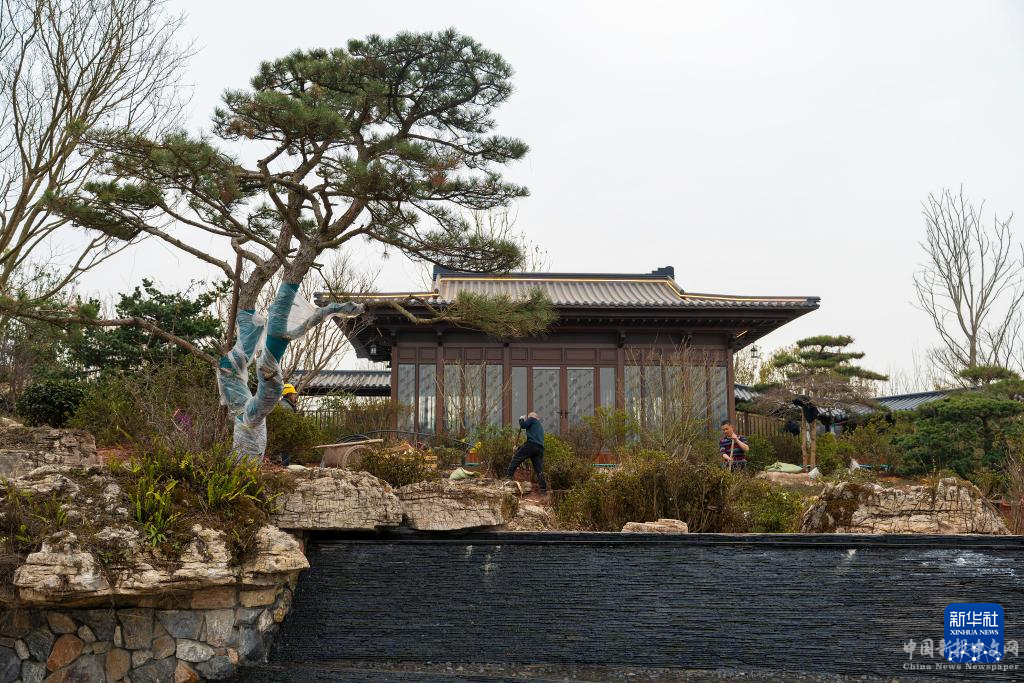 3月8日,工人在寧波園施工。