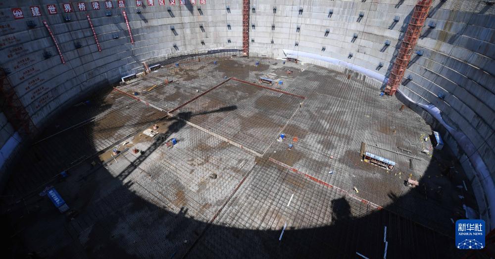 這是獅子洋大橋西錨碇施工現(xiàn)場(chǎng)(3月12日攝,無人機(jī)照片)。