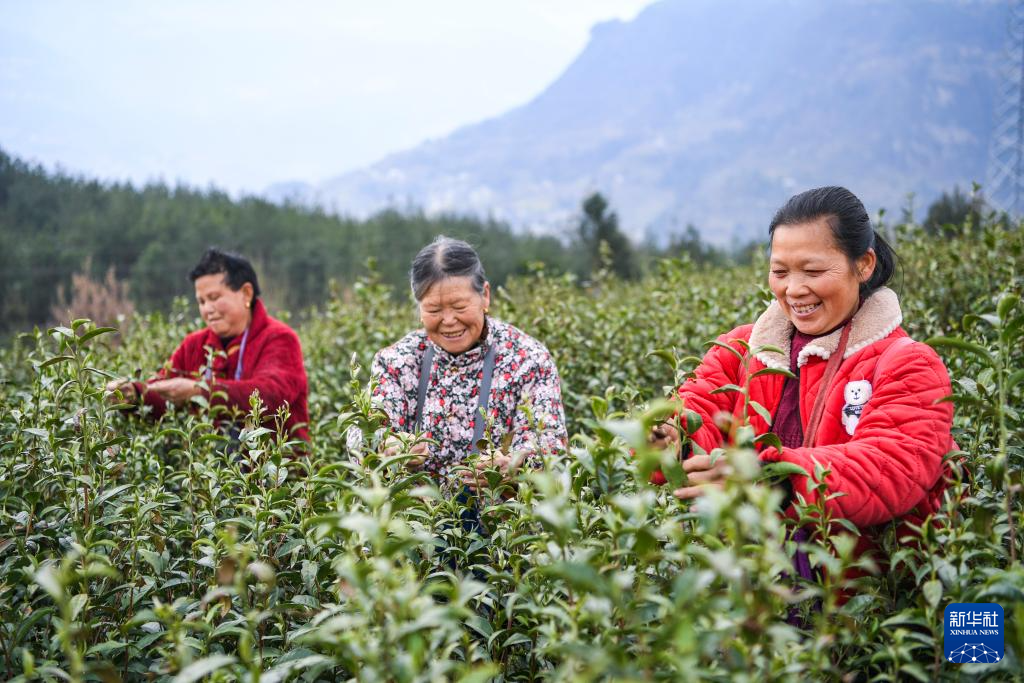 3月12日,茶農(nóng)在重慶市奉節(jié)縣五馬鎮(zhèn)樟木村茶園采摘春茶。