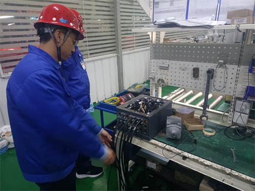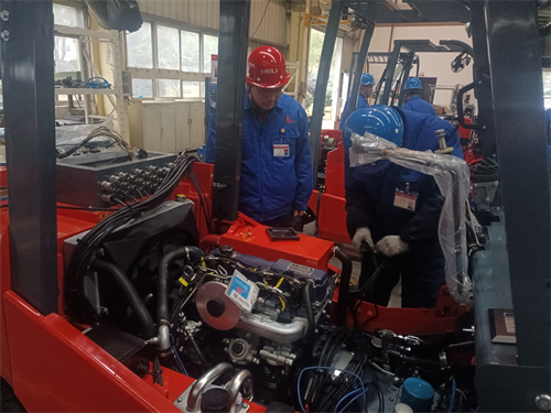 技術(shù)人員正在對(duì)防爆叉車進(jìn)行調(diào)試。