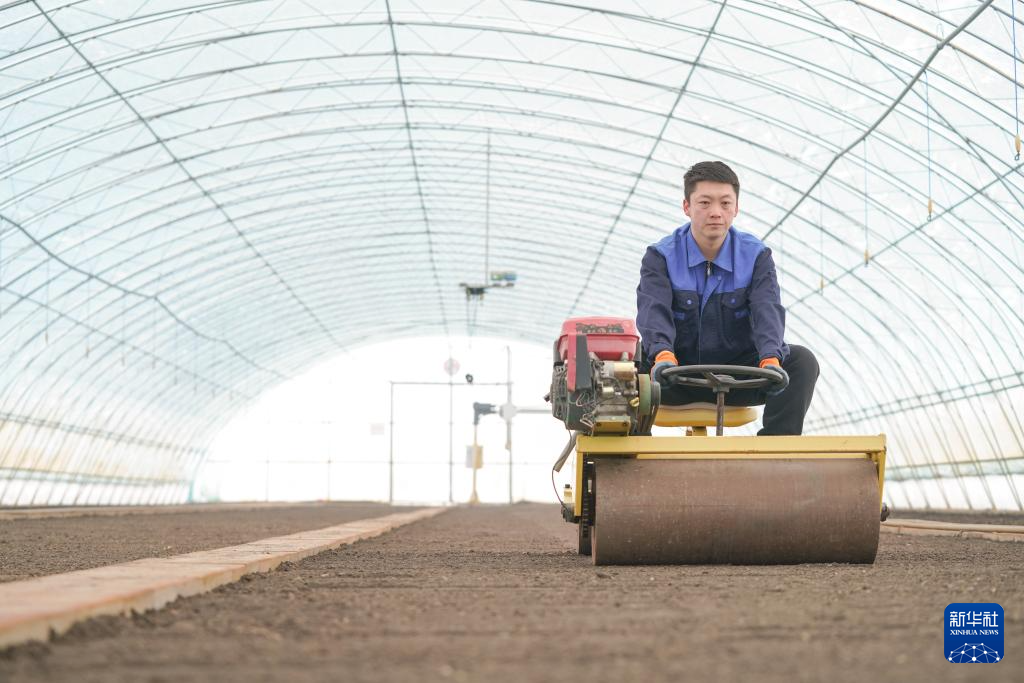 3月15日,在黑龍江北大荒農(nóng)業(yè)股份有限公司友誼分公司智慧農(nóng)場育秧大棚里,一名職工在進行水稻育秧前的地面平整作業(yè)。