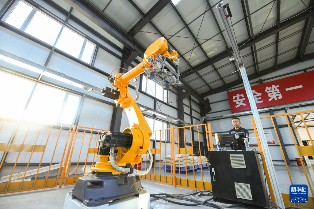 3月14日,在黑龍江北大荒農(nóng)業(yè)股份有限公司友誼分公司智能育秧中心,技術(shù)人員在測試用于水稻智能育秧作業(yè)的拆垛機械臂。