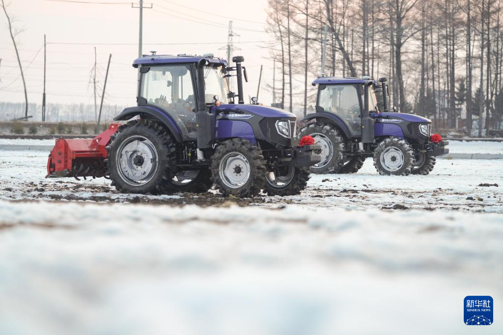 3月14日,在黑龍江北大荒農(nóng)業(yè)股份有限公司友誼分公司智慧農(nóng)場的地塊里,兩輛拖拉機在進行無人駕駛測試,該技術(shù)將應(yīng)用于水稻插秧前的田地打漿作業(yè)。