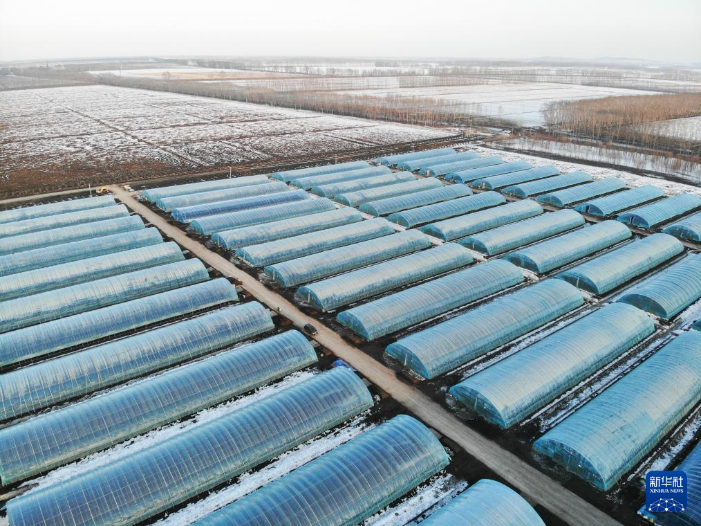 3月15日拍攝的黑龍江北大荒農(nóng)業(yè)股份有限公司友誼分公司的集中育秧大棚。截至2月28日,友誼分公司全面完成10668棟集中水稻育秧大棚的清雪扣棚工作(無人機照片)。