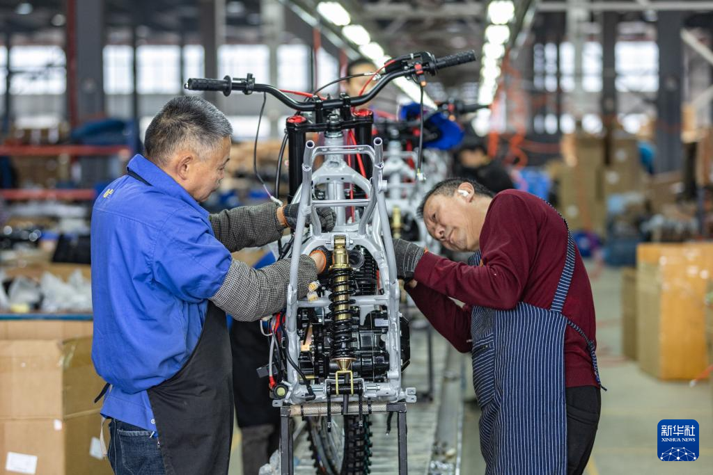3月15日,在位于重慶市璧山區(qū)的重慶悍威新能源有限公司,工作人員在組裝車(chē)間的生產(chǎn)線上作業(yè)。該公司生產(chǎn)的摩托車(chē)經(jīng)檢測(cè)合格后,將通過(guò)中歐班列發(fā)往歐洲。