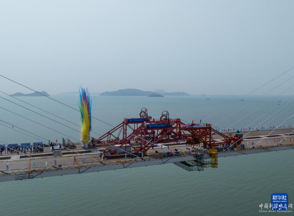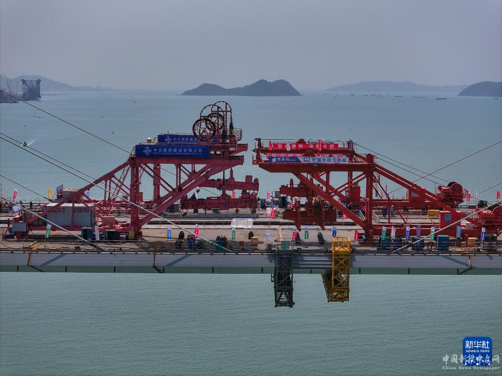 黃茅海跨海通道高欄港大橋合龍梁段(3月20日攝,無人機(jī)照片)。