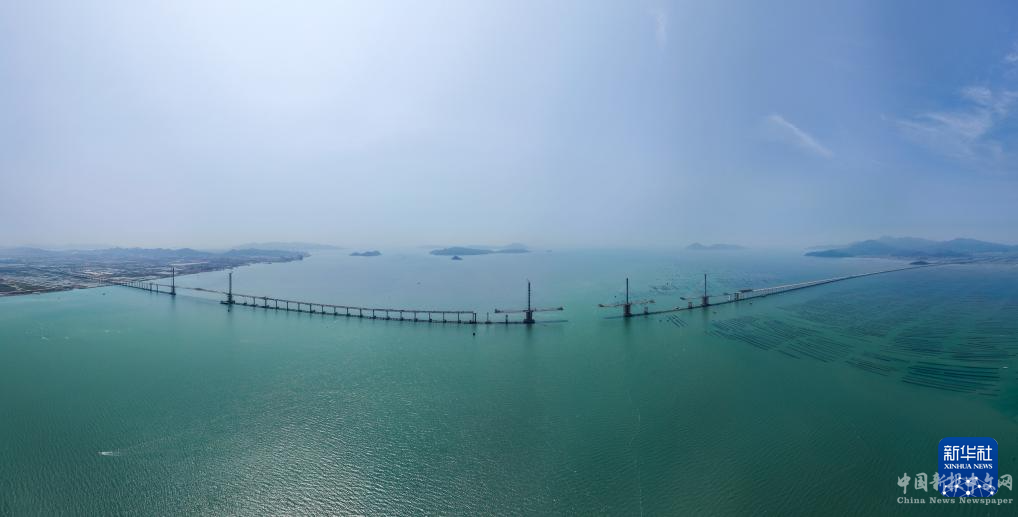 黃茅??绾Mǖ栏邫诟鄞髽颍ㄗ螅┖忘S茅海大橋(3月20日攝,無人機(jī)照片)。