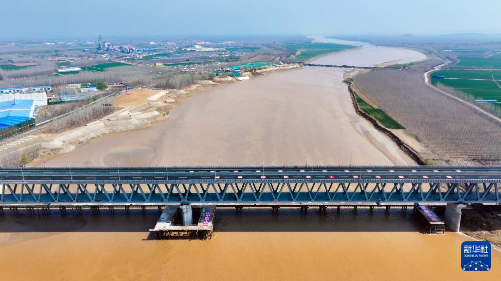 3月26日拍攝的建邦聊(城)泰(安)黃河公鐵大橋(無人機(jī)照片)。