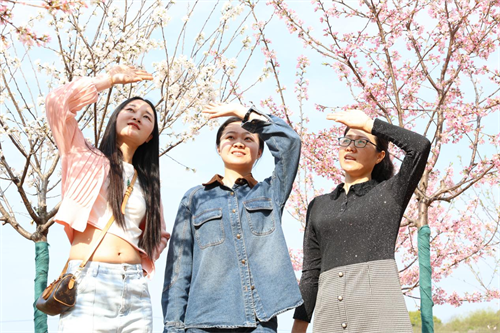 走進櫻花大道,有的游客三三兩兩,專程來趕赴這一場櫻花盛宴,他們或步履悠閑漫步,一起欣賞這滿樹繁花的浪漫;或拿起手機,將鏡頭對準枝頭,留下美麗的倩影;或站在櫻花樹下抬頭看,隨風翻飛的花瓣,更是別有一番意境。拍照打卡、踏青賞櫻……游客們在花海中尋找自己的方式不負春光,把和美鄉(xiāng)村的瞬間定格在照片里。