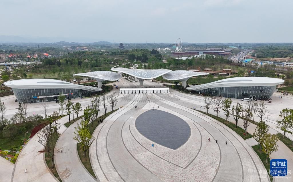 成都世園會(huì)主會(huì)場(chǎng)入口(4月12日攝,無人機(jī)照片)。