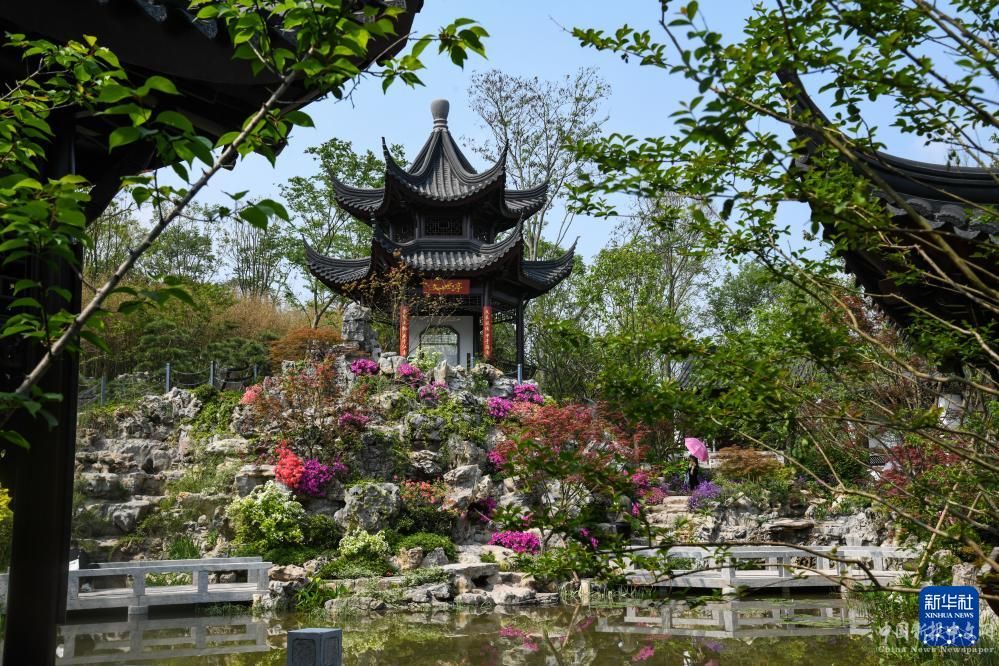 成都世園會(huì)主會(huì)場(chǎng)里的南京園一景(4月12日攝)。