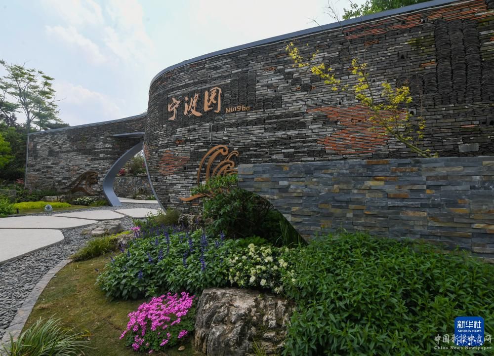 成都世園會(huì)主會(huì)場(chǎng)里的寧波園(4月12日攝)。