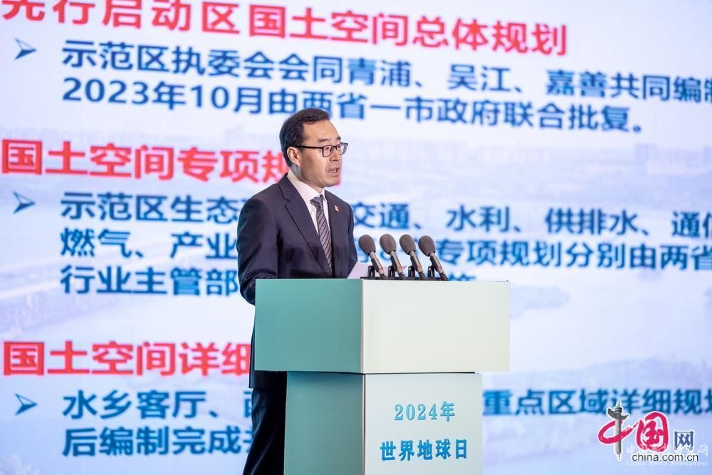 長三角生態(tài)綠色一體化發(fā)展示范區(qū)執(zhí)委會副主任、上海市發(fā)改委副主任張忠偉介紹了示范區(qū)規(guī)劃建設實踐。中國網記者 鄭亮攝