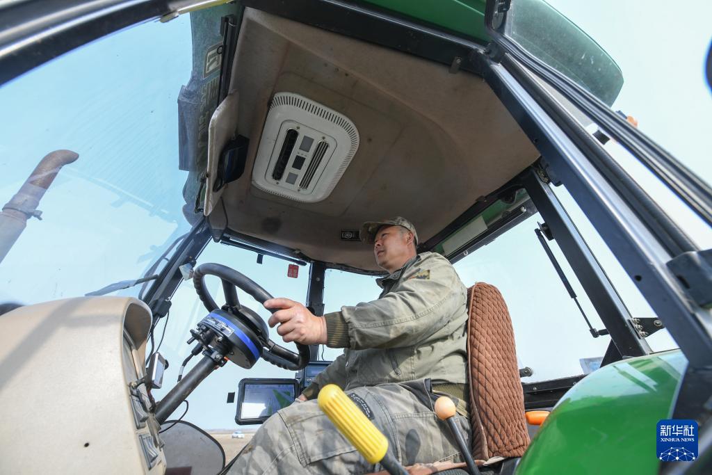 4月25日,在黑龍江北大荒農(nóng)業(yè)股份有限公司友誼分公司第五管理區(qū)一地塊,一名農(nóng)機手駕駛大馬力農(nóng)業(yè)機械進行玉米播種作業(yè)。