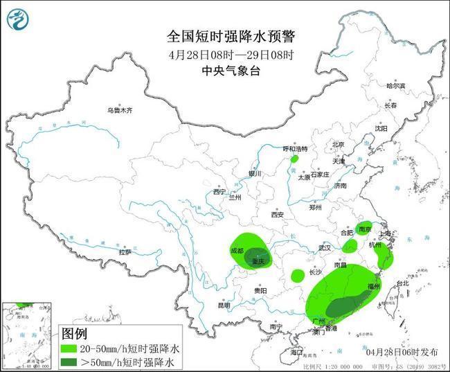 中央氣象臺4月28日6時繼續(xù)發(fā)布暴雨藍色預(yù)警:預(yù)計,4月28日8時至29日8時,內(nèi)蒙古中部、陜西北部、山西北部、四川盆地中東部、重慶西部、廣東東部、福建南部等地部分地區(qū)有大到暴雨,其中,廣東東部、福建東南部等地局地有大暴雨(100~180毫米)。上述部分地區(qū)伴有短時強降水(最大小時降雨量30~50毫米,局地可超過60毫米),局地有雷暴大風等強對流天氣。