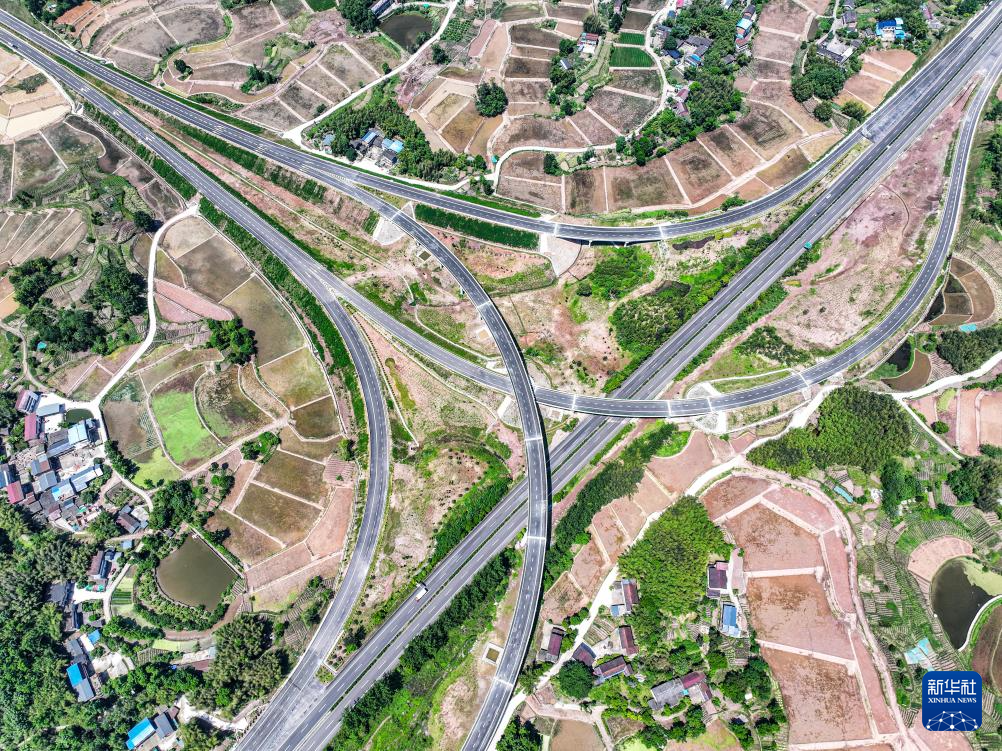 這是4月28日拍攝的重慶市梁平區(qū)境內(nèi)梁開高速與滬蓉高速聯(lián)通的石蓮樞紐互通(無人機(jī)照片)。