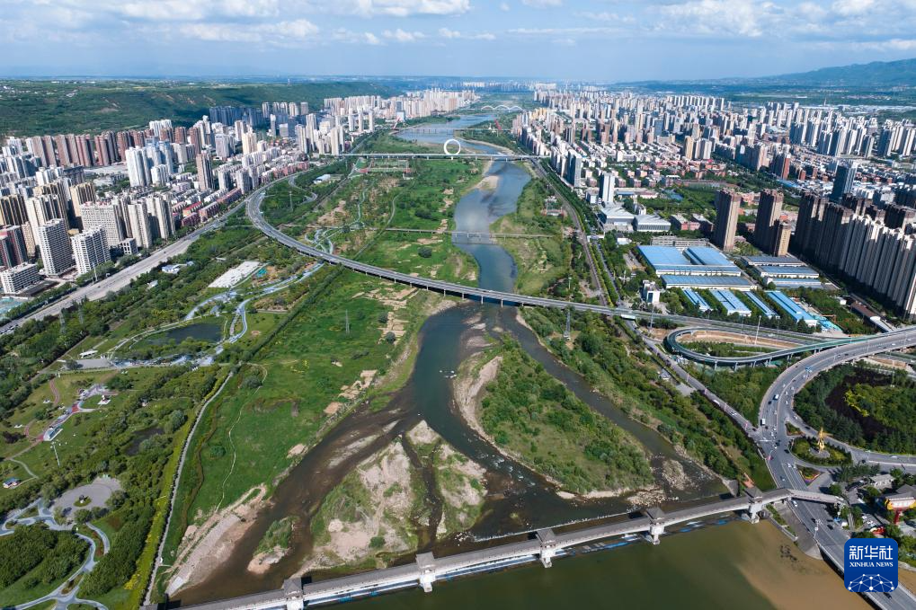 寶雞市區(qū)渭河沿岸景色(5月9日攝,無人機(jī)照片)。