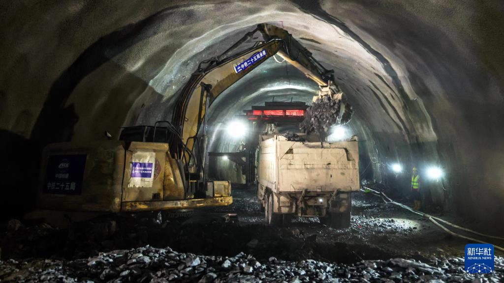 5月14日,六綿山隧道爆破完成后,施工隊在進行清渣作業(yè)。