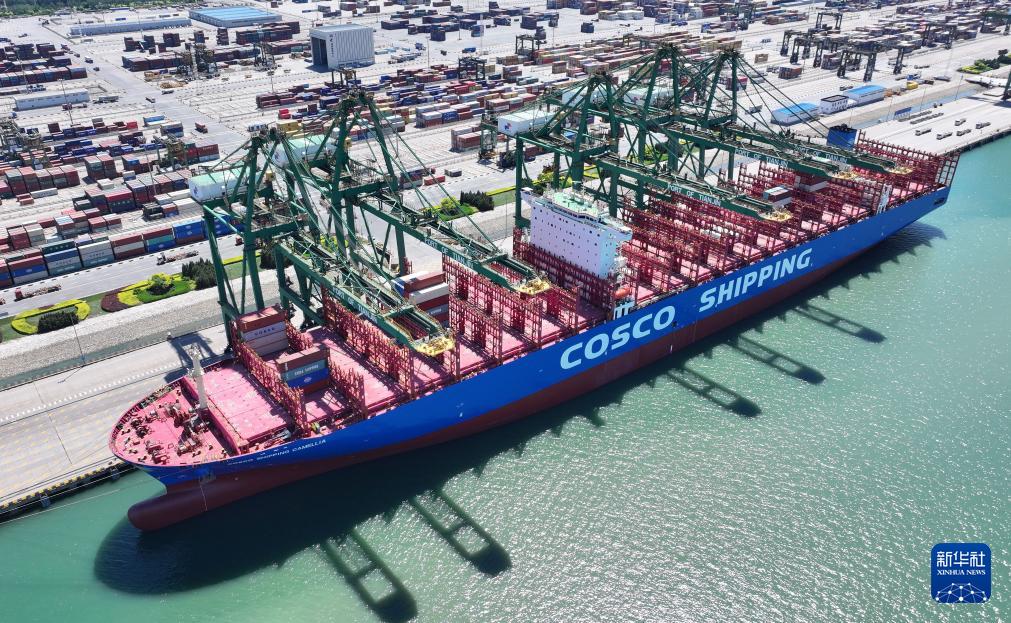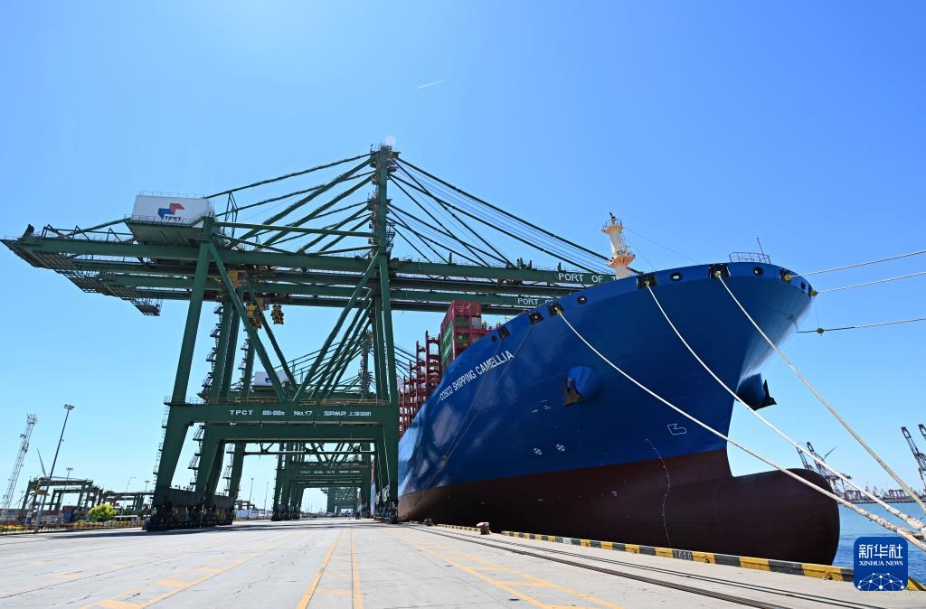 當(dāng)日,隨著“中遠(yuǎn)海運(yùn)山茶”輪駛離天津港太平洋國際集裝箱碼頭,標(biāo)志著天津港至美東的新航線正式開通。據(jù)了解,該航線共投入9艘集裝箱船,以每周一班的方式運(yùn)營(yíng),進(jìn)一步暢通我國北方通達(dá)美國的海上物流通道。新華社記者 趙子碩 攝