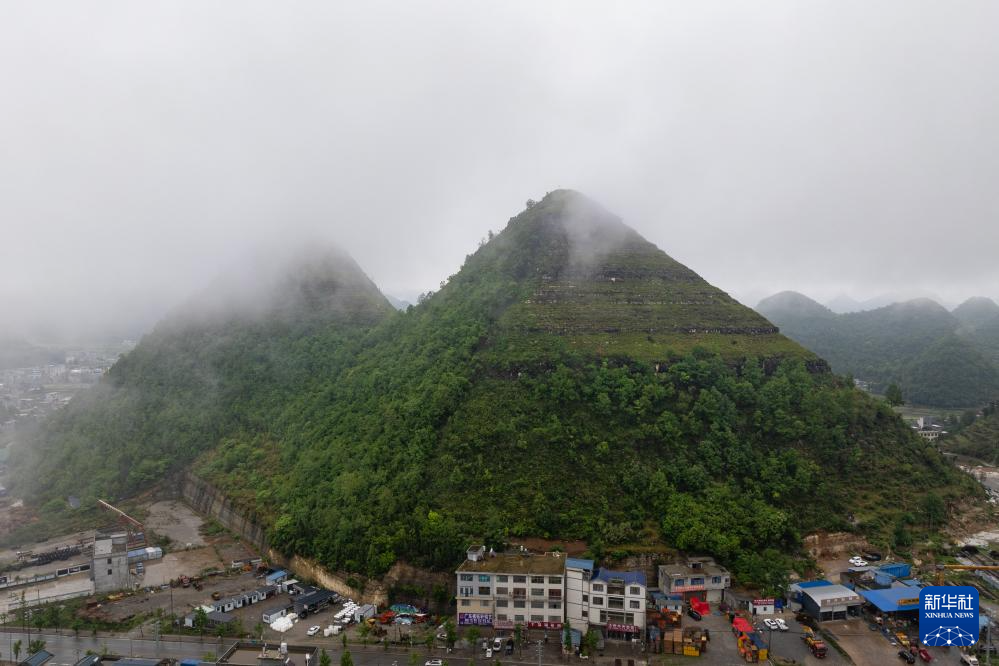 這是安龍縣郊外形狀酷似金字塔的山體(無人機照片,5月14日攝)。