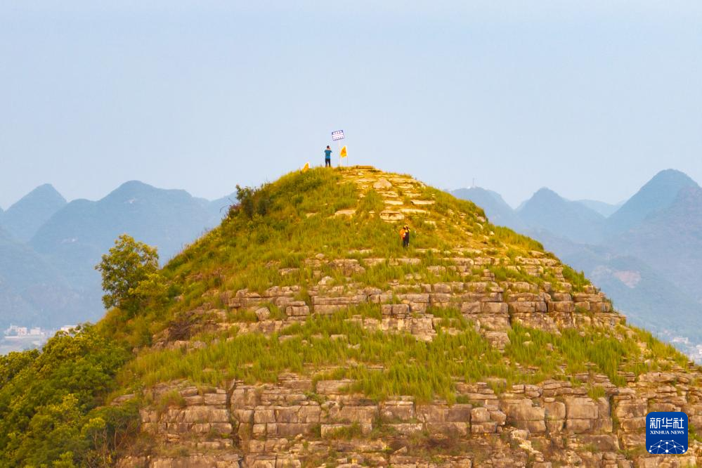 游客登上安龍郊外形狀酷似金字塔的山體游玩(5月14日攝)。