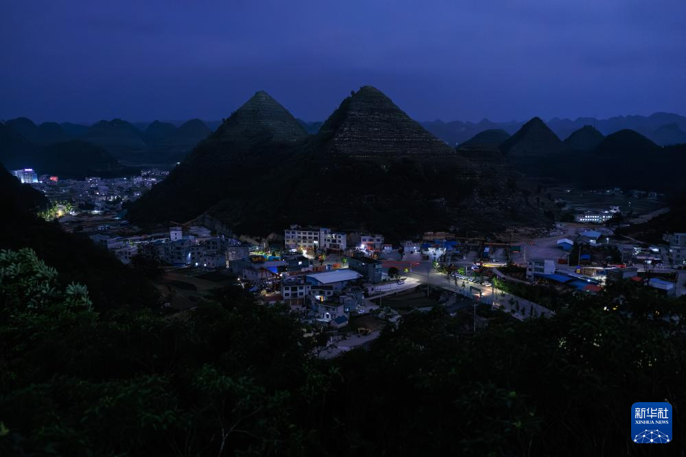 這是在夜色中拍攝的安龍縣郊外形狀酷似金字塔的山體(無人機照片,5月14日攝)。