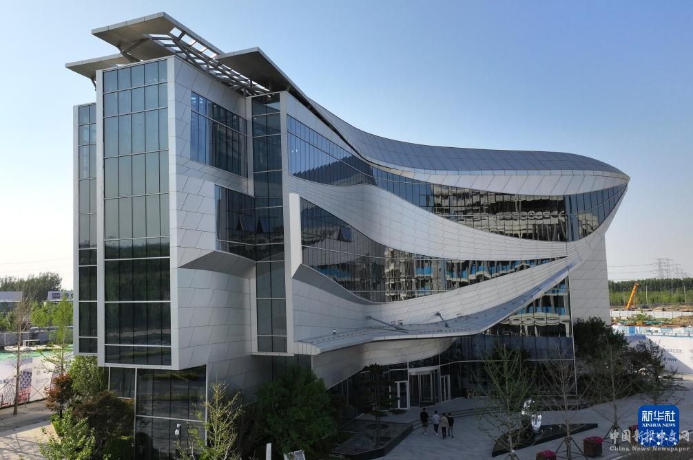 5月21日拍攝的雄安新區(qū)雄安站樞紐片區(qū)的中國能建“能建·新能源生態(tài)城”項目展示區(qū)(無人機(jī)照片)。