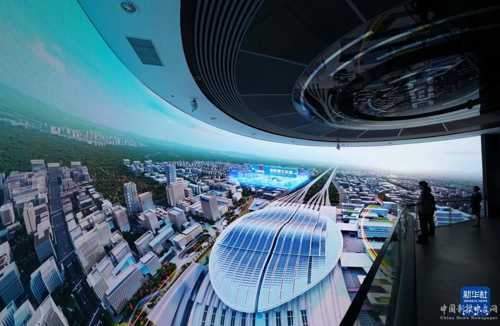 5月21日,在雄安新區(qū)雄安站樞紐片區(qū)的中國能建“能建·新能源生態(tài)城”項目展示區(qū)內(nèi),游客通過球形大屏了解園區(qū)概況。