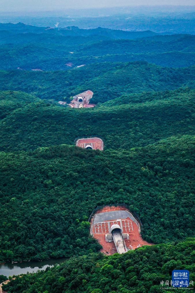 5月21日拍攝的滬渝蓉高鐵武宜段貫通的隧道群(無人機(jī)照片)。