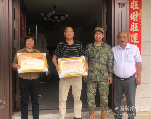 中國新報湖南訊(彭倩倩 劉擁軍)5月20日,衡南縣向陽橋街道組織為立功受獎現(xiàn)役軍人家屬送喜報。