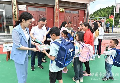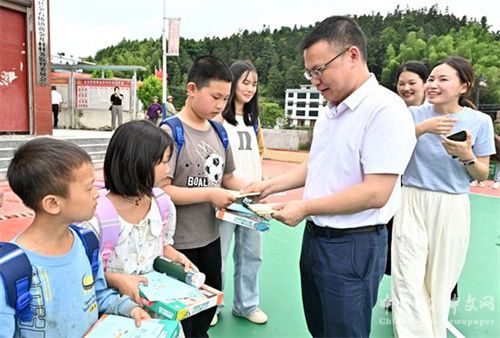 5月27日,湖南省隆回縣金石橋鎮(zhèn)黃金井村留守兒童在領(lǐng)取特殊的“六一”兒童節(jié)禮物。當(dāng)天,湖南省公路事務(wù)中心黨委副書(shū)記、副主任王明安一行,到鄉(xiāng)村振興幫扶聯(lián)系村黃金井給10名留守兒童分別發(fā)放慰問(wèn)金、贈(zèng)送新書(shū)包和書(shū)籍文具等學(xué)習(xí)用品,鼓勵(lì)他們努力學(xué)習(xí)。(賀上升 文鵬翔攝)