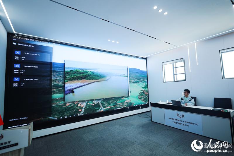 走進(jìn)江西翱翔星云科技有限公司“如來天網(wǎng)”數(shù)字沙盤數(shù)據(jù)引擎控制中心,記者看到,在技術(shù)人員的遠(yuǎn)程操控下,布局在南湖沿岸的2架無人機(jī)同時升空,組網(wǎng)開展空中河湖巡查,并實(shí)時回傳相關(guān)圖像、數(shù)據(jù)至控制中心后臺。