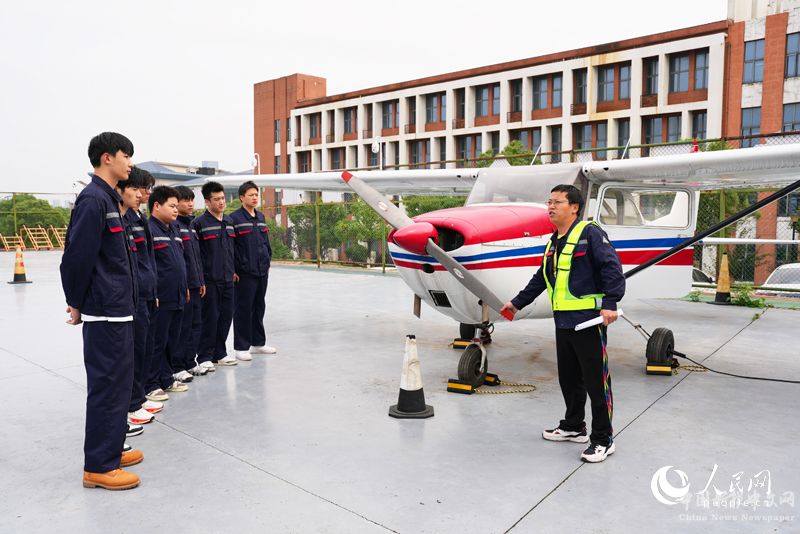 4月29日,記者來到剛掛牌成立一個月的江西飛行學(xué)院,趕上飛機(jī)維修師王燕軍和同學(xué)們正在上課。