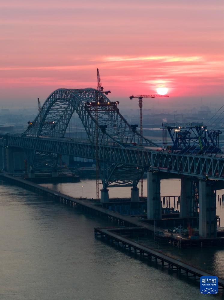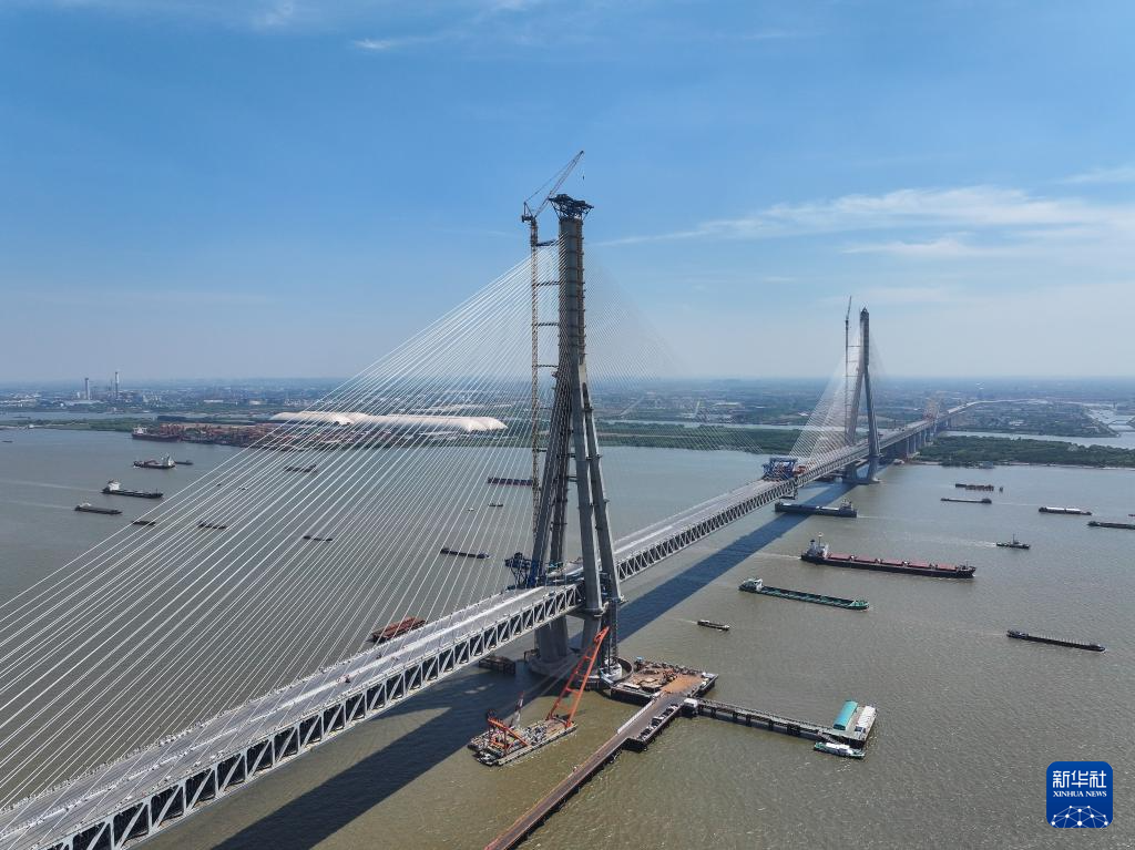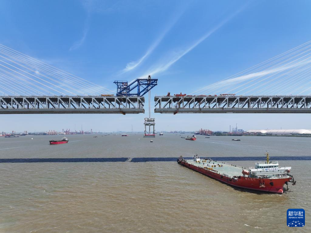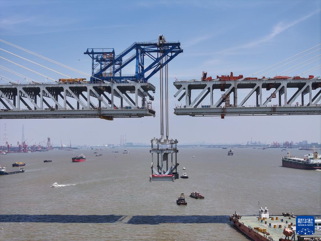 常泰長江大橋主航道橋合龍段鋼桁梁吊裝完成