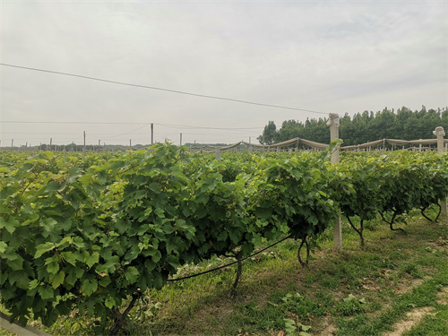 “這個(gè)品種叫故道紫晶,是中國(guó)農(nóng)科院鄭州果木研究所與我們新培育的品種,我們2022年做了品種登記。它果穗呈圓錐形,大小整齊,果粒圓形,著生緊密,紫黑色,汁液多,有草莓香味,屬中熟釀酒葡萄品種。”在葡萄架前,趙子牛指著青澀的果穗說(shuō),為了保證葡萄的參量和質(zhì)量,我們每株只保留18個(gè)果穗。黃河故道有上千年黃河淤積形成的沙質(zhì)土壤,適宜于多種葡萄的栽培種植,是葡萄生長(zhǎng)和葡萄酒生產(chǎn)的理想地帶,四季分明的氣候更是形成優(yōu)質(zhì)葡萄獨(dú)特品質(zhì)最重要的客觀條件。