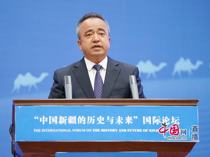新疆維吾爾自治區(qū)黨委副書記、主席艾爾肯·吐尼亞孜致辭。中國網(wǎng) 鄭亮 攝影