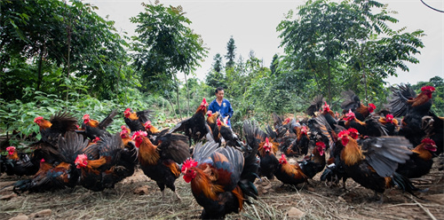 “土紅雞”公雞重約2.5公斤,母雞重約1.9公斤。目前該公司在本地市場開始推廣,深受當(dāng)?shù)匾恍└邫n飯店和機(jī)關(guān)、行政、企事業(yè)單位食堂的青睞。“紅”雞還遠(yuǎn)銷廣州等沿海城市。2023年出欄生態(tài)雞220多萬羽,產(chǎn)值1700多萬元。