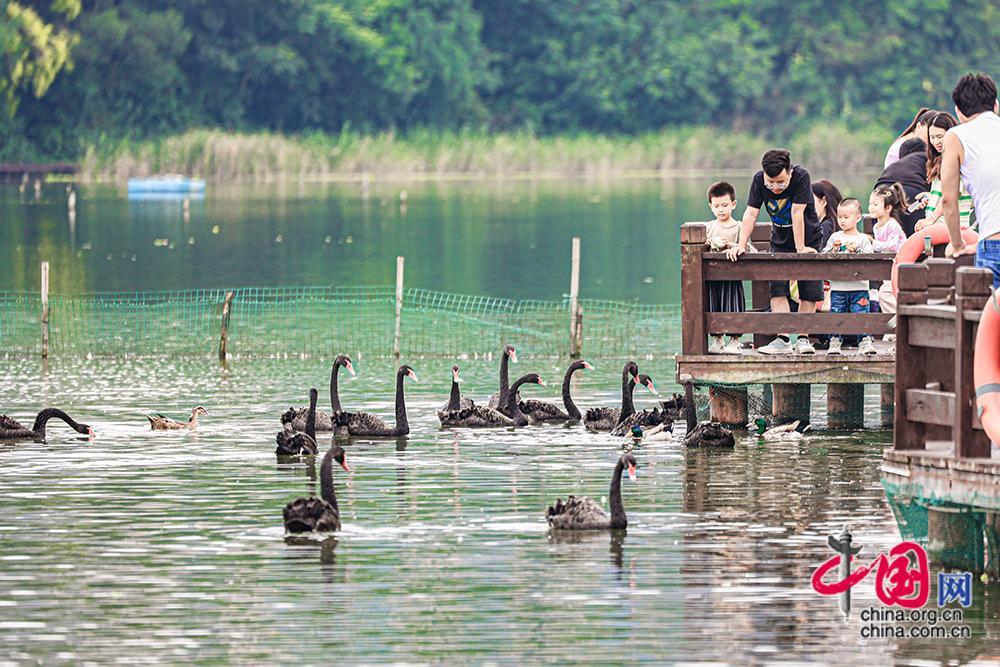 在五緣灣濕地公園,游客觀賞黑天鵝。五緣灣濕地公園已成為廈門最大的濕地生態(tài)公園之一。中國網(wǎng)記者 倫曉璇 攝