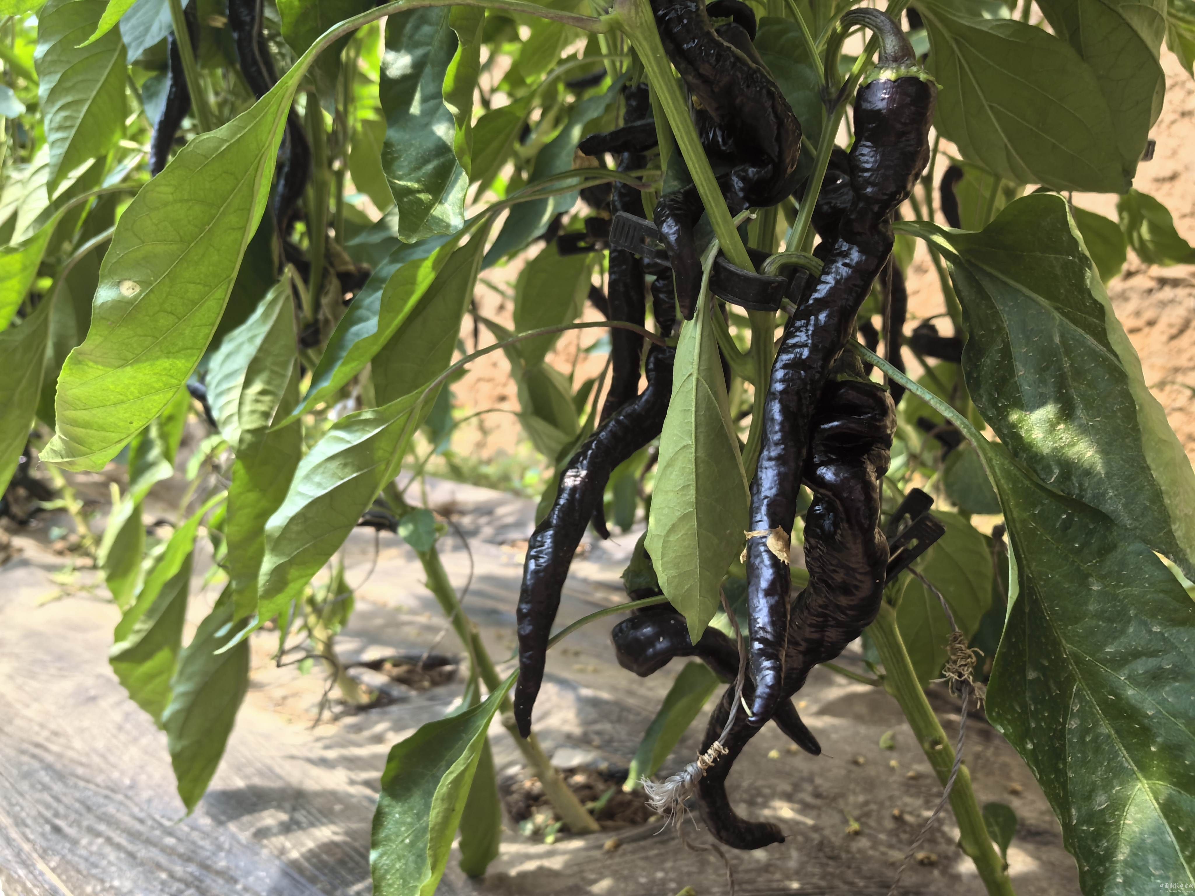 陽高縣設(shè)施番茄科技示范基地里的“黑色”尖椒。人民網(wǎng) 武笑攝