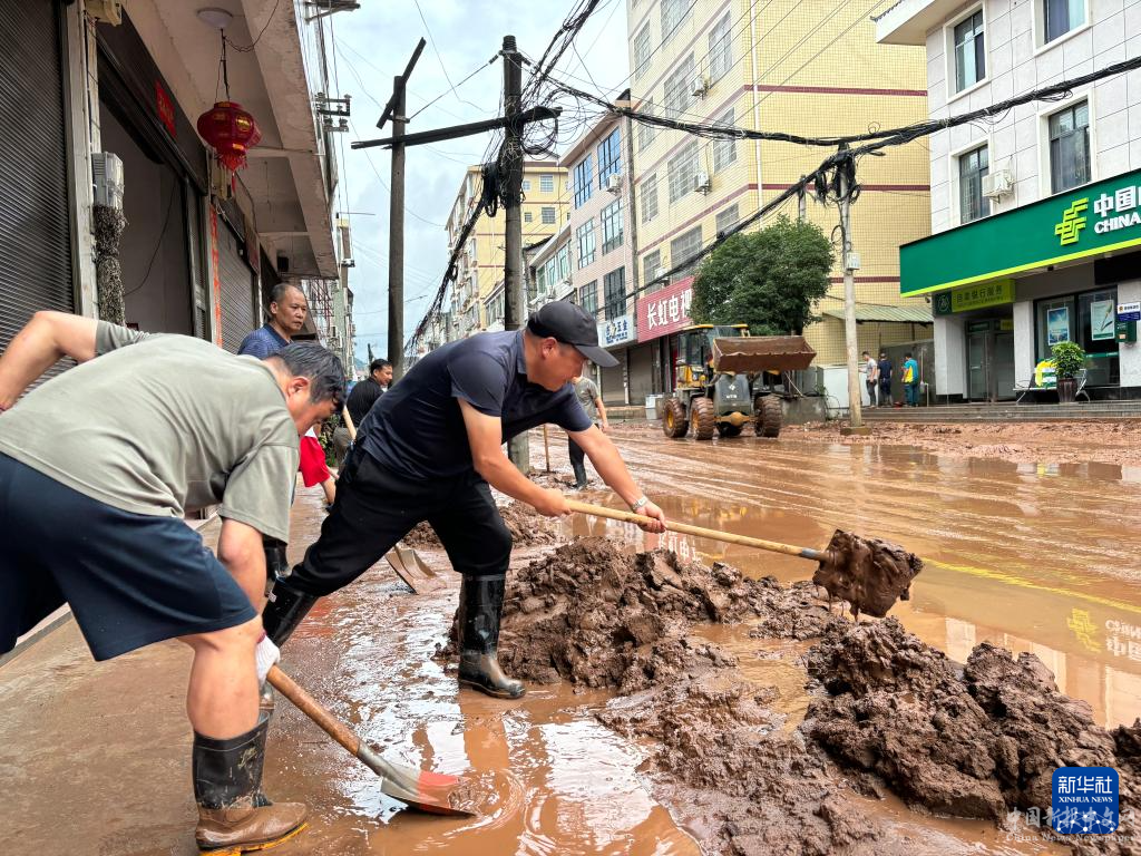 6月23日,沅陵縣五強(qiáng)溪鎮(zhèn)當(dāng)?shù)卣M織力量開展道路清淤作業(yè)(手機(jī)照片)。