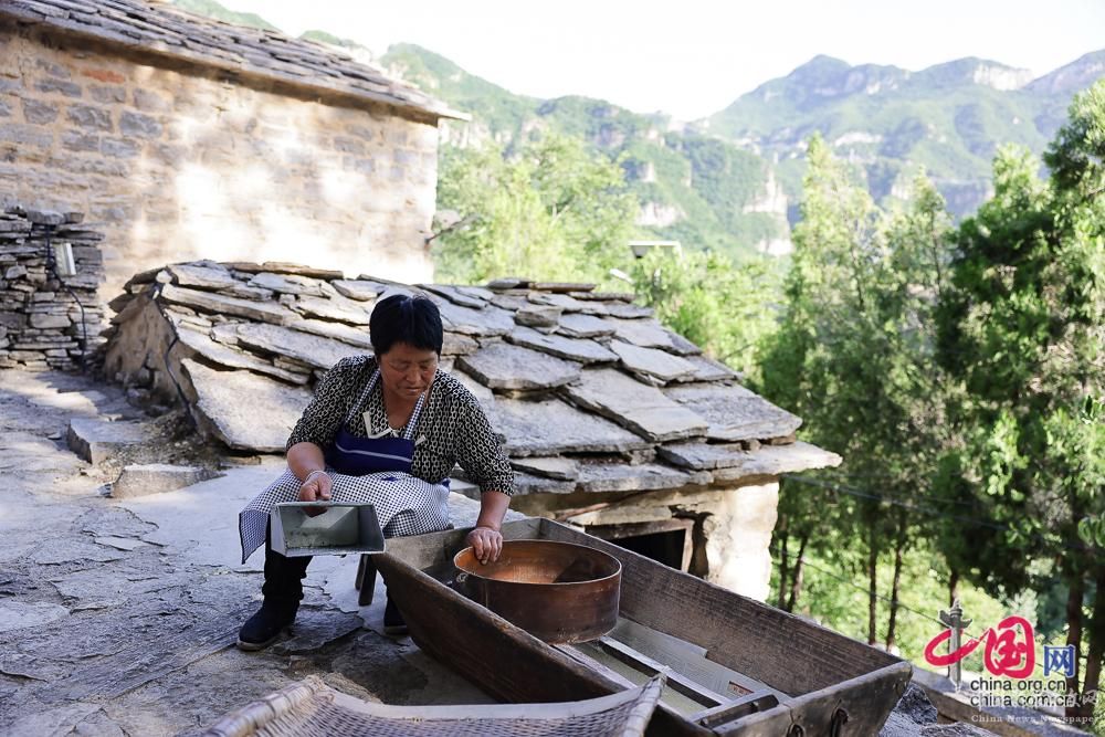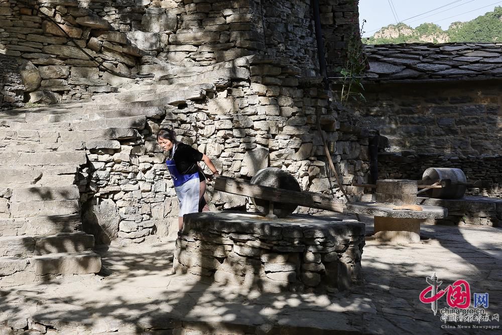 岳家寨村環(huán)境優(yōu)美,過去道路崎嶇難走,村寨幾乎與世隔絕。民居的房子都是就地取材,采用當(dāng)?shù)氐氖^砌筑而成。村里的石墻、石頂,村頭的石磙、石碾,村邊石桌、石凳,皆是天然古樸,原始天成。圖為村民手拉石碾碾磨玉米。中國網(wǎng)記者 董寧 攝影