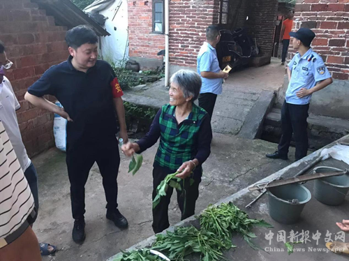 夜巡隊(duì)員們挨家入戶進(jìn)入村民家中,宣傳平安建設(shè)