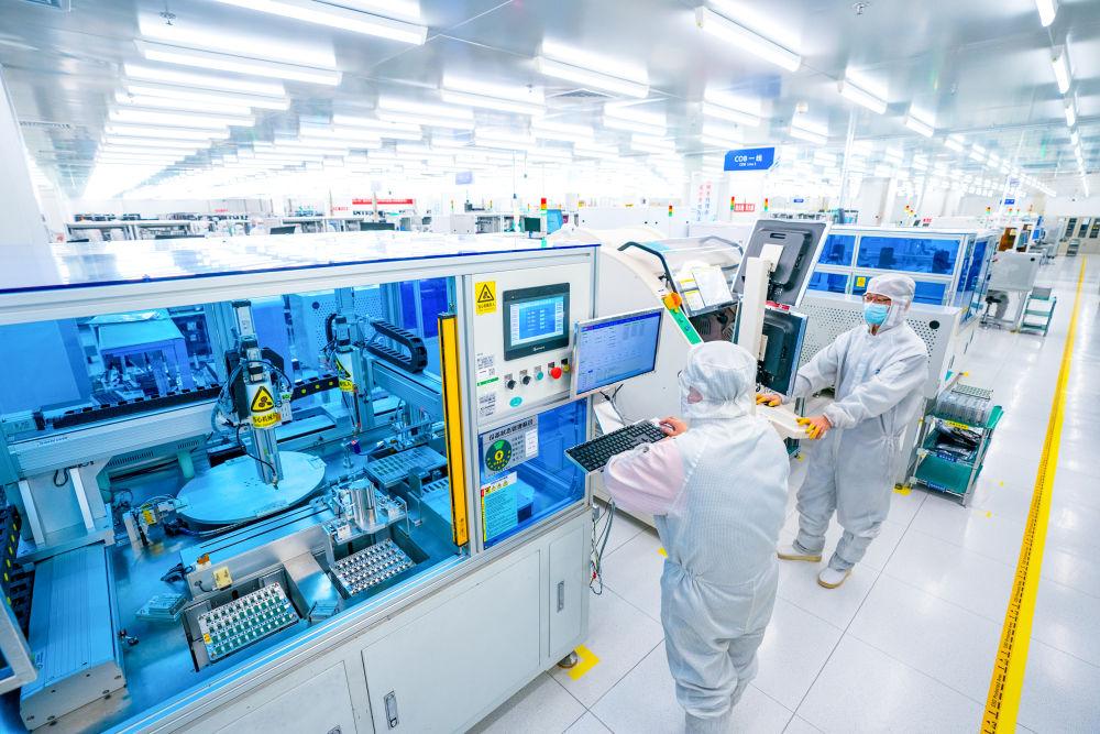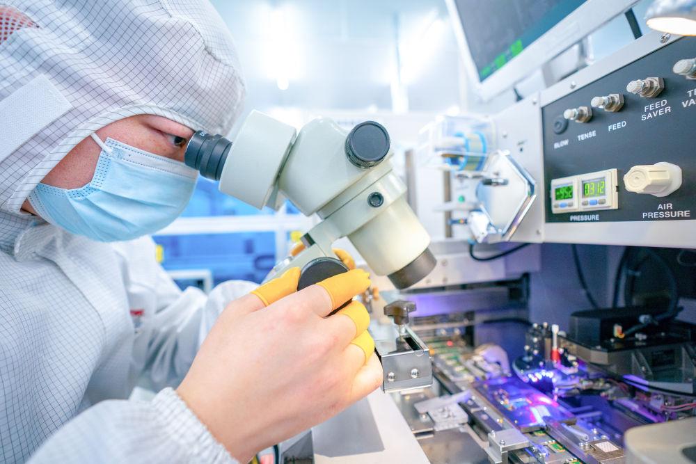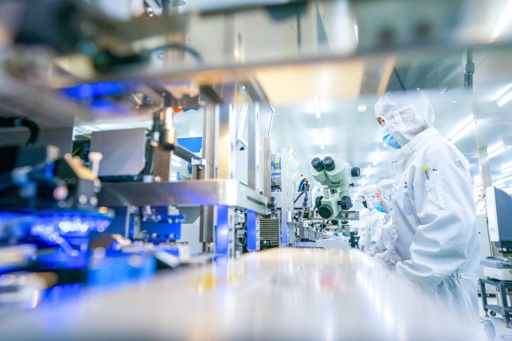 在位于武漢中國光谷的光電器件研發(fā)制造商——武漢光迅科技股份有限公司生產(chǎn)車間內(nèi),工作人員在光模塊生產(chǎn)線作業(yè)(2月5日攝)。