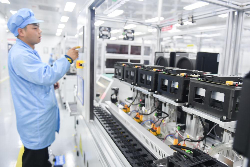 在位于武漢中國光谷的高德紅外智感科技產(chǎn)品生產(chǎn)線上,工作人員在操作設(shè)備對紅外模組進(jìn)行數(shù)據(jù)采集(2月28日攝)。
